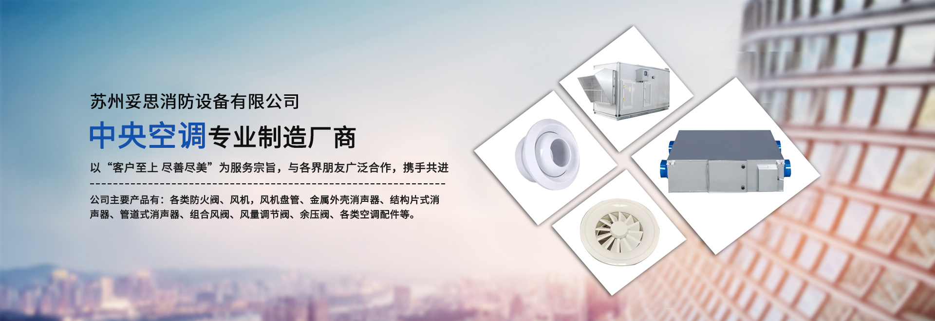 蘇州妥思消防設備有限公司是專業從事防排煙設備,風機設備的研究、開發、生產、營銷和空調工程設計及技術咨詢等業務的科技型民營企業。位于經濟繁榮的長江三角洲,地處江陰長江大橋以北——江蘇靖江,公司是中央空調專業制造和機電工程安裝企業,擁有雄厚的技術力量,先進的CAD輔助設計系統,專業化的加工中心和完善的檢測設施。 公司自成立以來始終將科技發展作為第一生產力,為適應企業蓬勃發展和市場激烈競爭的需要,公司不斷深化改革,抓住機遇,走出了一條適應市場需求,科技興企、質量取勝、管理增效的發展之路。公司主要產品有:各類防火閥、風機,風機盤管、金屬外殼消聲器、結構片式消聲器、管道式消聲器、組···